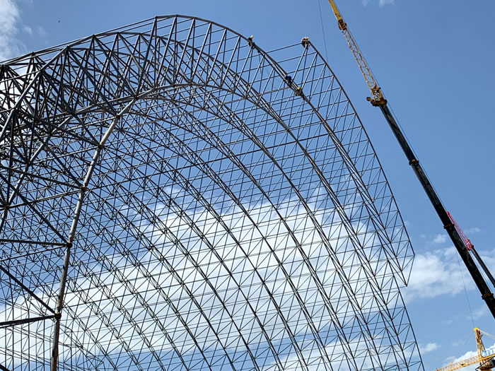 (2)网架加工前应对现场尺寸进行复测,确认无误后方可进行加工、安装;网架制作、运输、安装应遵守《空间网格结构技术规程》JGJ7-2010、《钢网架龙海螺栓球节点》JG/T 10-2009、《钢网架龙海螺栓球节点用高强度螺栓》 GB/T 16939-2016、《龙海钢结构龙海工程龙海施工规范》 GB50755-2012、《龙海钢结构龙海工程施工质量验收标准》 GB50205-2020。